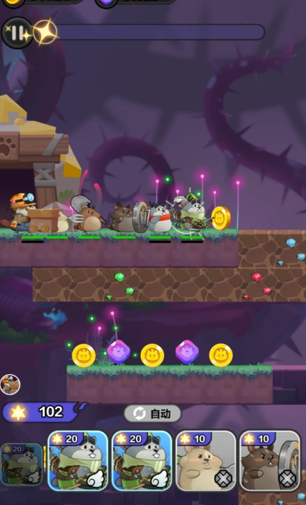 以可爱的鼠宝形象为核心设计角色,搭配色彩明快的场景画面,整体画风萌趣治愈,视觉上带来轻松愉悦的游戏体验,契合游戏的欢乐冒险基调。