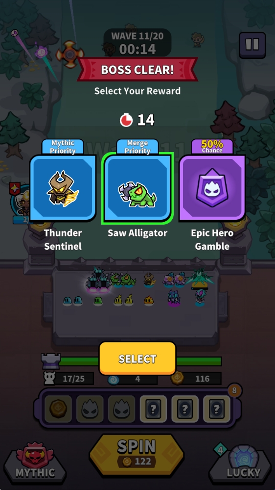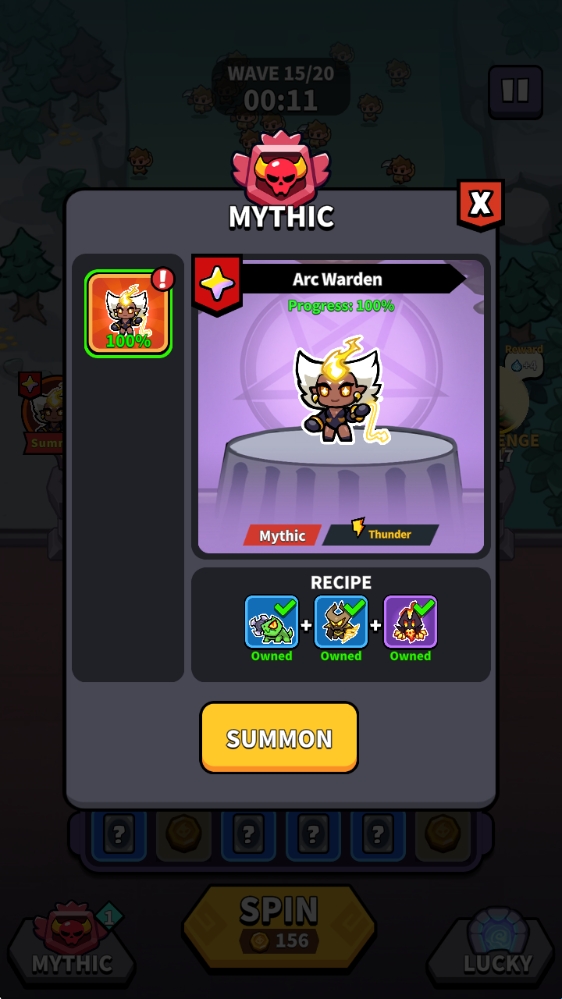 5、当场上有了指定的伙伴后,我们还可以进行合成,召唤更为强大的伙伴。