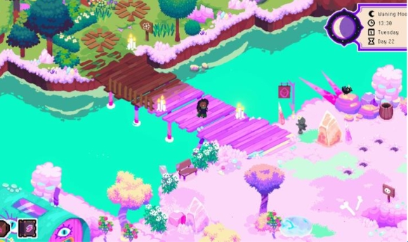 1、美术设计:游戏采用水彩与神话风格混合的美术设计,搭配暖色调光影和精致像素画风,营造出温馨治愈的奇幻氛围。整个游戏世界仿佛一幅活过来的童话画卷。