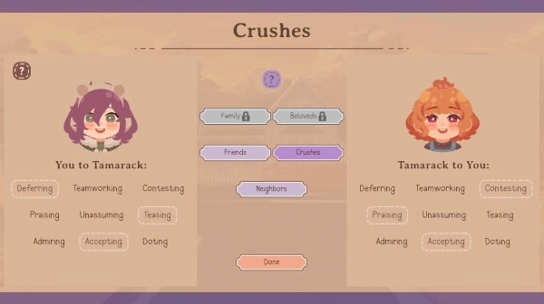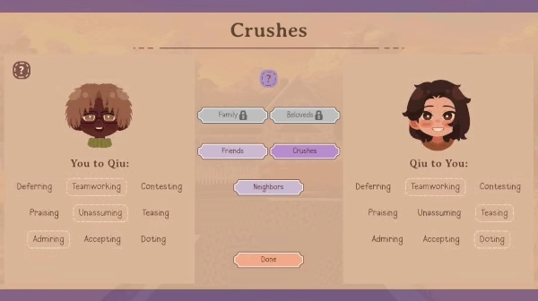 设置你专属的“互动指标”,大致描述你与其中一位主角的互动方式,你可以保持这些指标不变,也可以随着成长而改变。邱和塔玛拉克与你的互动模式会根据你的性格和经历而逐渐发展,并呈现出个性化的变化。