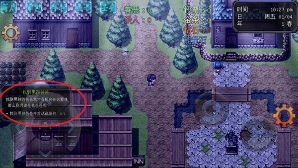 玩家在游戏地图地图里会触发新手任务,帮助小男孩找到爸爸即可完成任务成功到村庄居住。