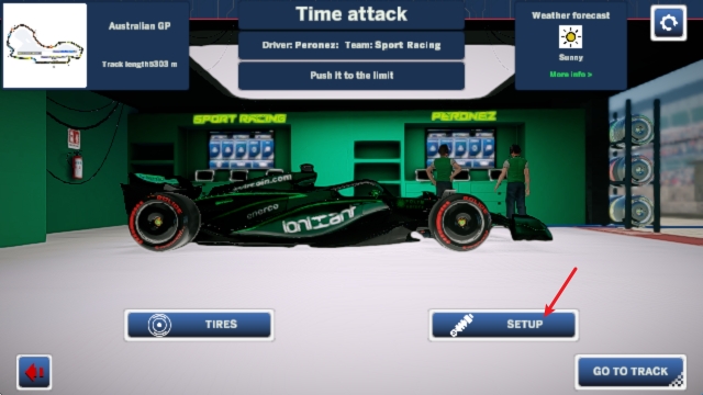 2、随后进入比赛后,选择setup进行改装。