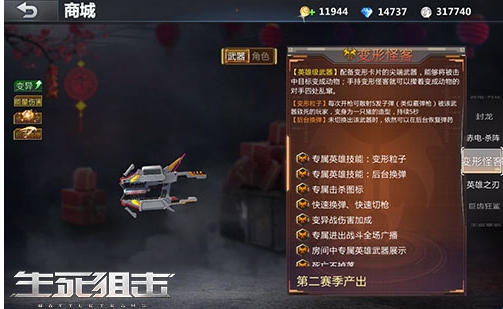 随着版本的更新,除了越来越多的新玩法和地图进入游戏以外,福利也变得越来越多。而全新的赛季系统,正是新福利系统中的佼佼者,为大家带来一波又一波的惊喜。在今天的内容中,我们就来看一看在《生死狙击》手游第二赛季奖励中的永久副武器福利——变形怪客,看一看这把英雄级武器到底如何。