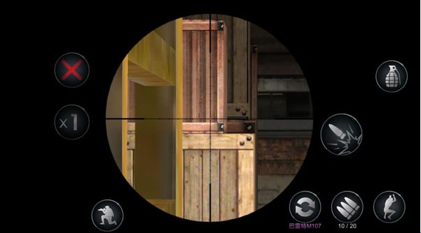 玩家在使用狙击枪时大致操作位置相同,在点击射击按钮后进入开镜模式,开镜模式下右侧会显示开镜的倍数和退出开镜模式的按钮。同时普通模式的按钮全部保存,玩家可以随心所欲的操作。