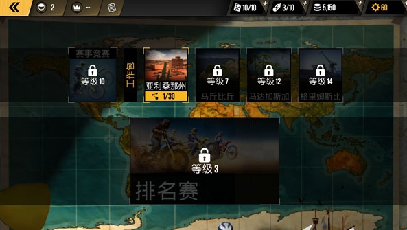 4、参加比赛,击败各路越野摩托车赛车手,在各项赛事中留下自己的最佳成绩,将你的成绩写上去。
