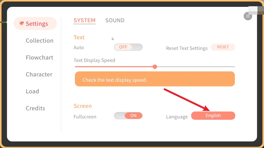 2、进入之后,在右下角可以看到language,点击后面的ENGLISH。