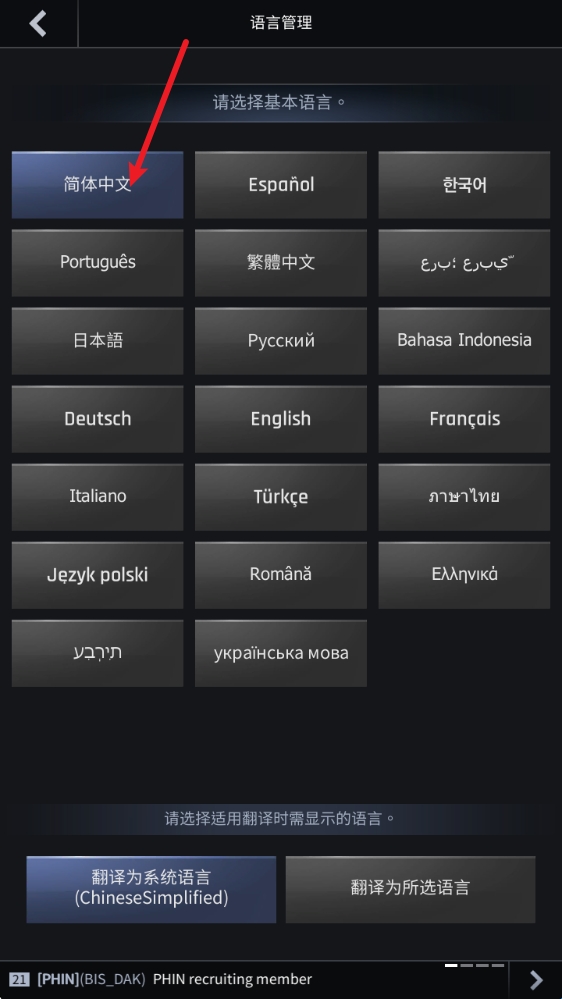 3、选中简体中文后,点击即可切换。