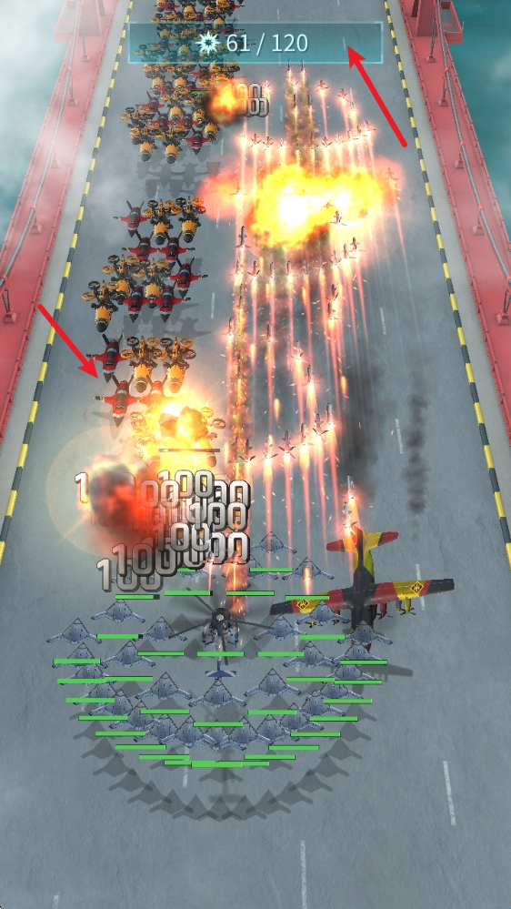 1、游戏中左右拖动屏幕即可移动战机,场地中会有各种BUFF拾取。
