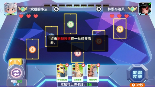 3、按住第一张卡牌到达指定的位置,按照顺序放置卡牌,点击准备完毕即可战斗。