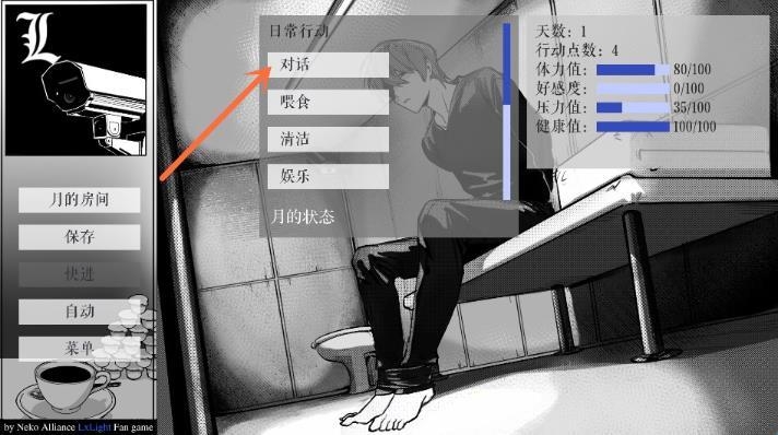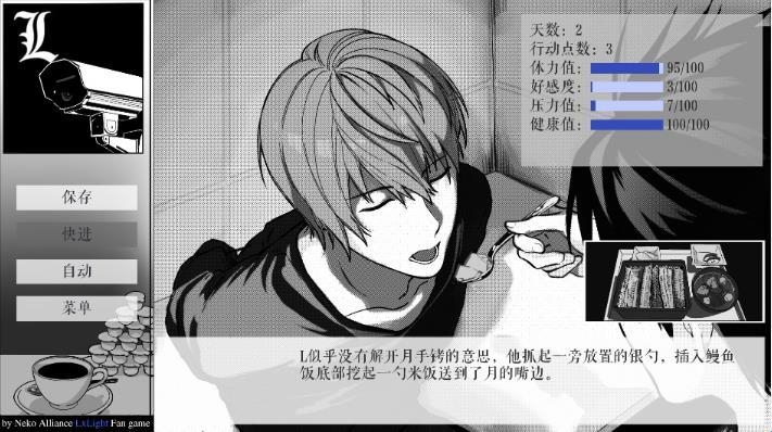 这个结局随便操作应该都能达成,21天后L会带着月外出,届时会出现一个打电话的选项,选择之后弹出的内容对应的便是Ne结局(要是还没达成,就参考下面三个结局的操作反向进行)。