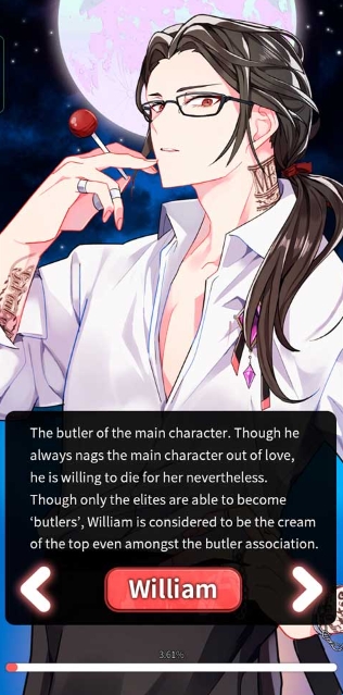 女主角的管家。虽然主人公总是因为爱而唠叨,但他还是愿意为她而死。虽然只有精英才能成为“管家”,但即使在管家协会中,威廉也被认为是顶级的精英。
