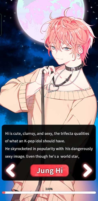 1、与所有迷人的合作伙伴建立复杂的关系,并随着故事的进展解锁更多角色,从而潜入互动故事。您将能够通过实时电话和视频聊天与每个人互动。