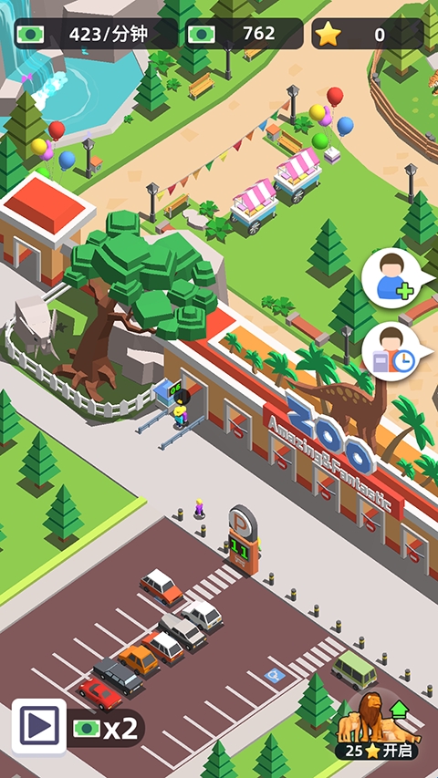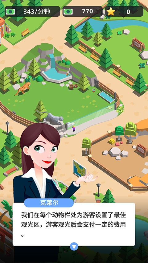 吸引游客前来打卡消费后,你还能不断扩展园区,建造惊险刺激的游乐设施、温馨互动区和高端餐饮服务,让动物园日益繁荣壮大。从小作坊到世界顶级景点,一步步见证你的经营奇迹。游戏操作简单上手,策略深度十足,感兴趣的玩家快来下载体验,成为动物园界的超级巨星吧!