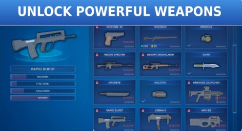 该游戏充分还原了枪战的精彩打斗场面,游戏效果逼真且十分紧张,无休止的战争交火,多个游戏任务等待解锁,还有众多丰富道具可以使用,只要你能顺利过关,游戏过程中可以拾起敌人散落的枪支和道具,同时你还可以使用金币购买。