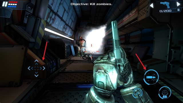 2、左侧摇杆控制角色移动,右侧可以瞄准敌人进行设计。
