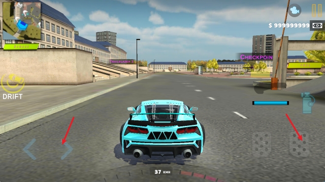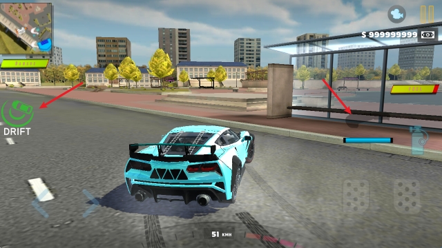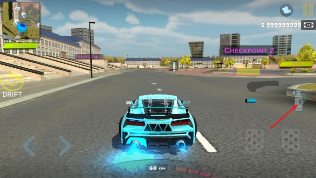 2、在左侧可以调整自己的漂移模式,右侧手刹可以减速。