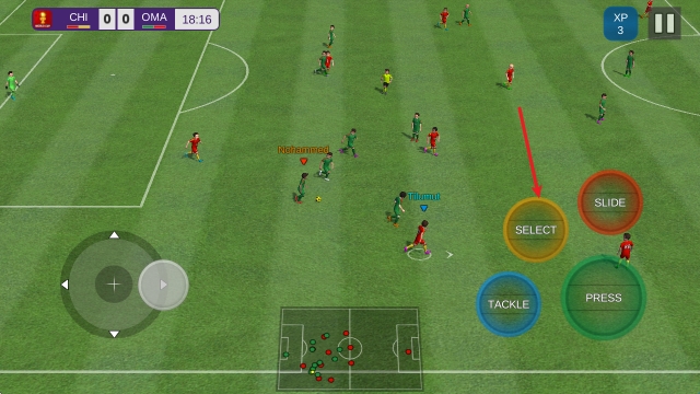 2、正式开始后,左侧摇杆控制球员,当持球进攻的时候,会操控持球的球员。