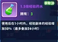 一共有两种,1.5倍经验药水可以免费得到,而2倍经验药水需要到商城里面购买,都只有一个小时的时效,并且无法叠加使用。