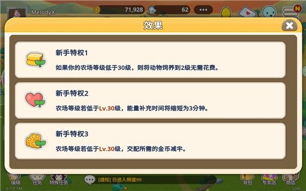 农场30级以下有三个新手特权:
