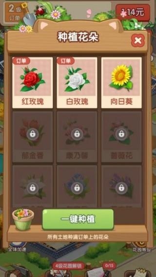 3、持续完成订单任务,能解锁更多稀有花种,不断丰富种植品类,开启更具多样性与趣味性的养花之旅。