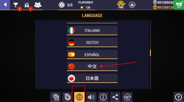 3、最后选择“地球”图标,将语言调整为“中文”就设置好中文了。