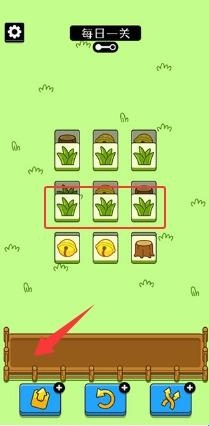 3、在游戏的下方可以看到7个卡槽,玩家们需要使用手指对各个相同的图案点击进去进行消除。