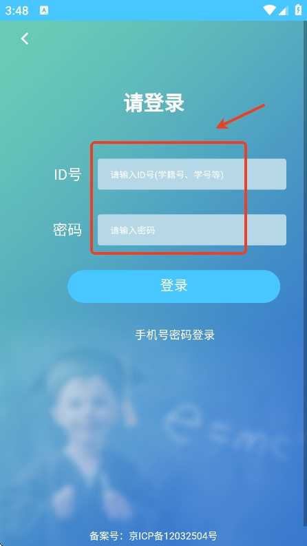 2、然后家长们输入ID号和密码进行登录,就成功绑定班级啦