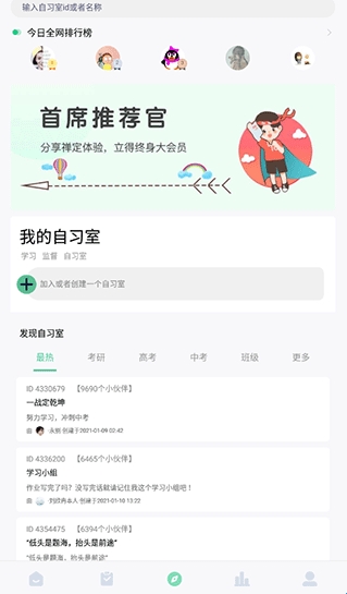 3、在自习室页面,有各种学习小组,你可以加入你感兴趣的,然后一起学习交流讨论,一起变得更加优秀。