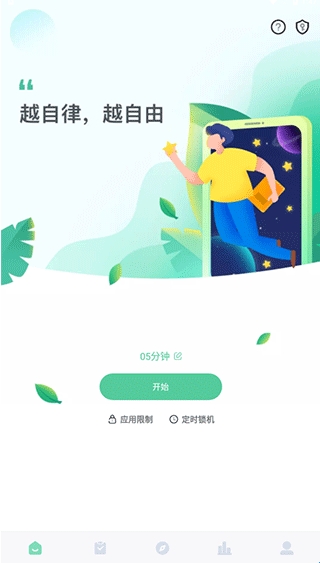 1、打开软件,进入首页就是定时锁机页面,可以设置时长,在这个时间内限制了手机使用,让你更加专注的学习。
