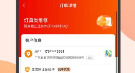 1、师傅在这里进行在线接单以及处理订单,帮助师傅更好的管理订单