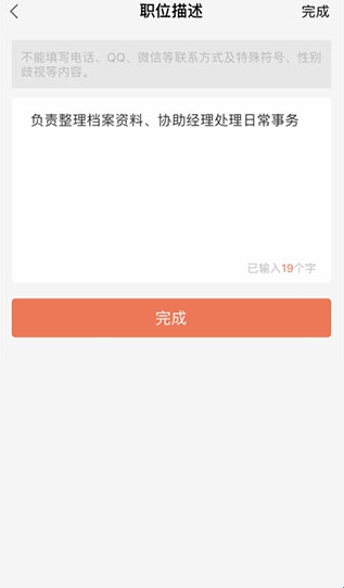 7、填写职位描述,尽可能多描述职位相关信息,方便求职者了解岗位的职责和职能,如下图所示: