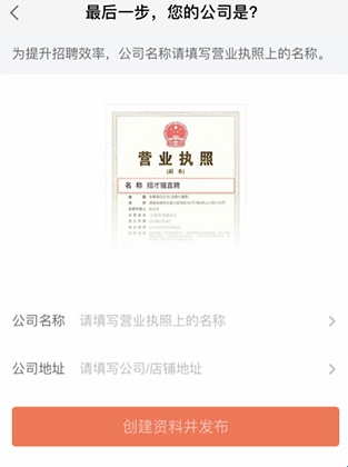 11、点击发布后,最后填写企业相关认证信息,如下图所示: