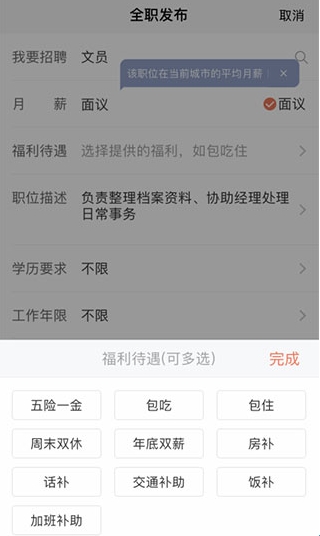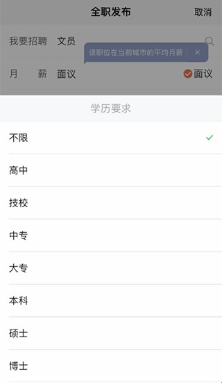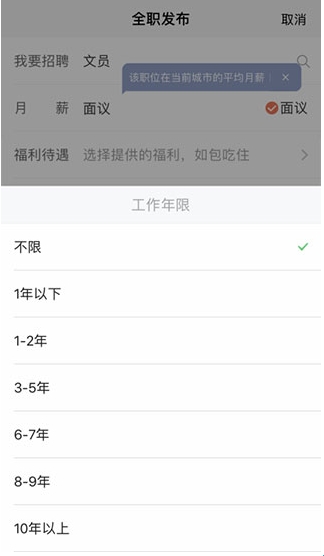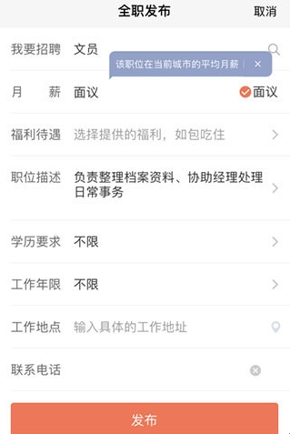 4、以“全职招聘”为例,点击进入页面,填写所需职位,如下图所示: