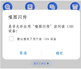 如果使用安卓手机,连接设备时请注意授权弹框,除对喔图闪传APP授权点击确定外,其他的例如图库、相册等一律点击取消