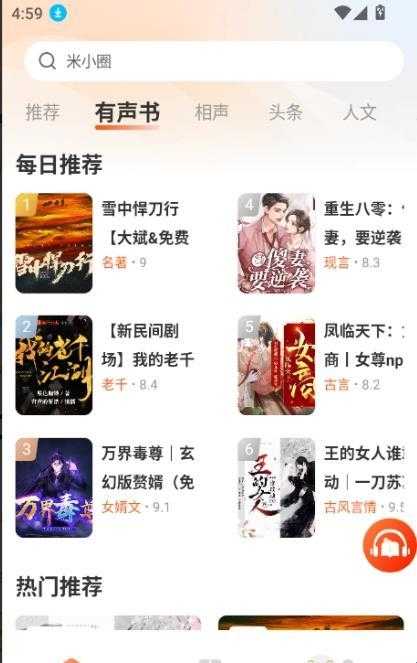 更新及时:各类音频内容实时更新,热门作品快速上线,让用户及时获取新鲜内容,保持听书新鲜感。