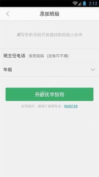 3、选择自己对应的年级 ,填写班主任的电话或者班级码就可以联系到同班同学和老师啦,没有也可以不填写。点击开启优学旅程就注册成功了,快注册试试吧!