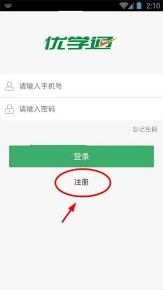 1、下载好优学通app后直接打开,进入登陆界面,点击注册。