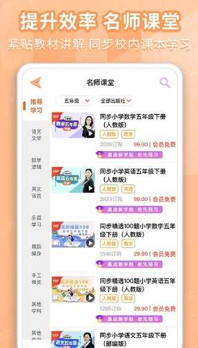 2.小学数学:同步教材讲解:视频讲解重点知识点教材全解,让孩子学会举一反三,精选试题查漏补缺。口算趣味闯关:现行教材同步练习,每个单元都会有习题来供孩子练习,学会基础每一步。
