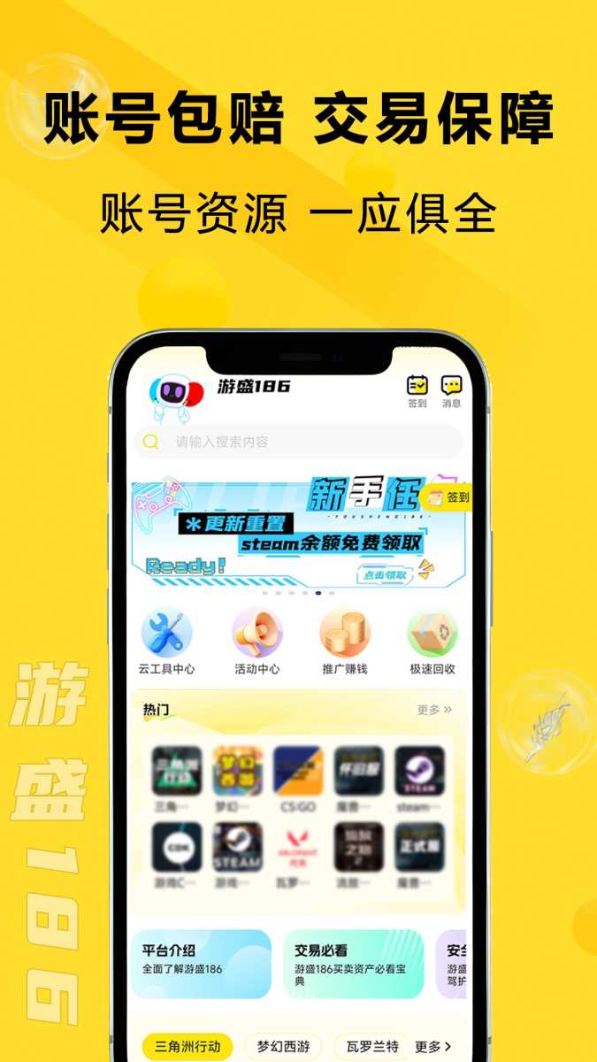 游盛186是游盛旗下专业游戏账号交易平台,提供丰富多样的游戏资源,覆盖端游如三角洲、梦幻西游、CS2,以及手游王者荣耀、和平精英、原神,还有Steam等多种热门品类。