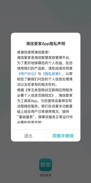 1、可以直接下载最新版本的海信爱家app,进入的时候需要先同意隐私权限。