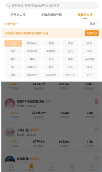 1、在【播主】功能中,用户可以找到通过多维度数据筛选出的优秀内容创作者、优质带货播主和高性价比可挂榜播主。