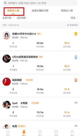 5、app除了可以帮助用户快速定位优质播主外,为了让用户快速挖掘日/周/月的优质带货播主,上线了【带货达人榜】,可以更好学习他们的带货经验。
