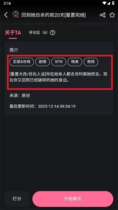 2.向下滑动页面,即可查看该角色的简介和标签信息。