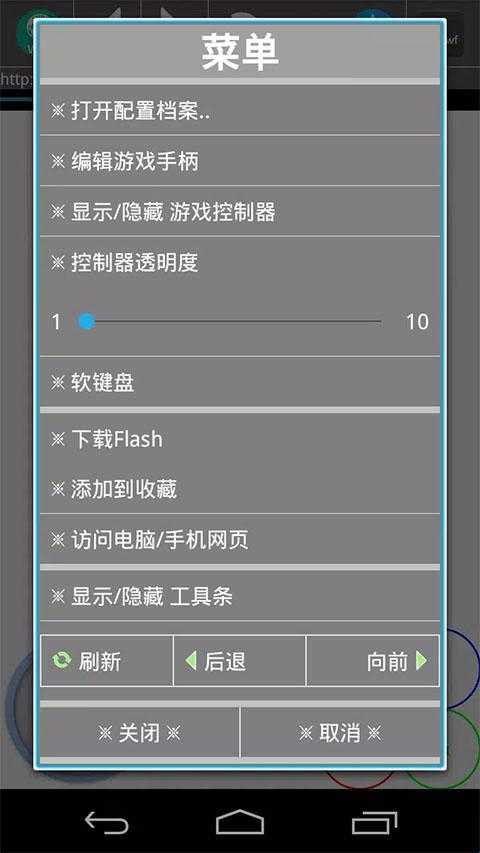 4、在Flash播放过程中,你可以通过菜单来选择游戏控制器的样式以及打开软键盘等。