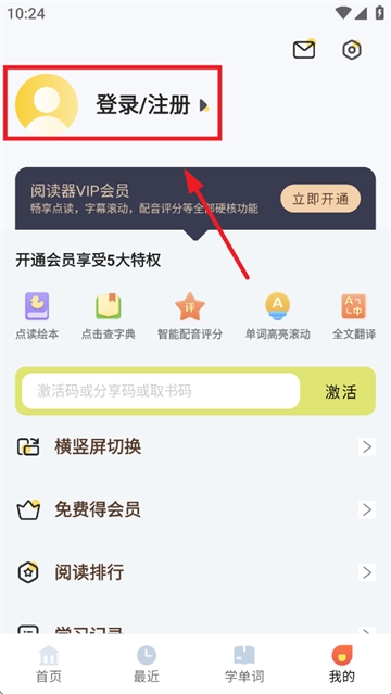 3、在我界面选择登录/注册