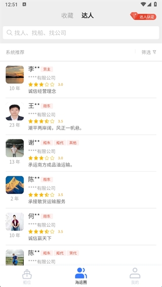 3、通讯录中可以查看各个船主、船员等相关的联系方式,方便大家沟通。