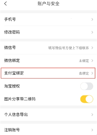 4、点击【支付宝绑定】开始绑定即可