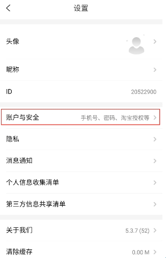 3、点击【账号与安全】