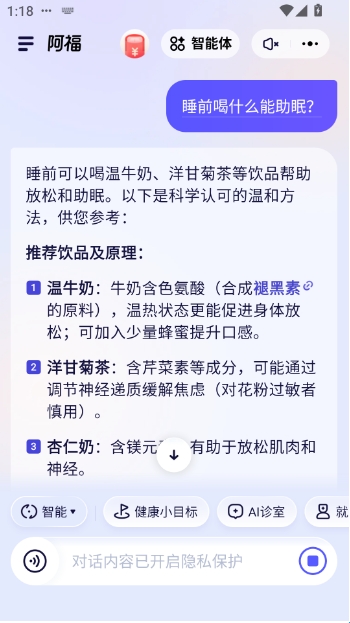 2、进入主页后即可直接输入健康问题进行咨询。