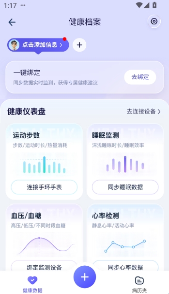 4、可创建个人医疗档案,用于存储和管理健康数据。